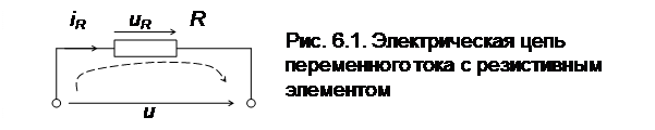 Рассмотрим цепь, у которой потребителем энергии является резистор (рис. 6.1). В цепи переменного тока резистивный элемент принято называть активным сопротивлением R (по отношению к источнику является пассивным), а параметр