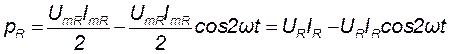 Исследуем энергетические процессы в цепи с резистором. Мгновенная мощность рR на резисторе R определяется по формуле:
