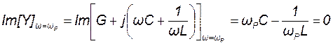 Из анализа рис. 11.2 следует, что на резонансной частоте (ω = ωP) мнимая составляющая входной проводимости параллельной RLC – цепи должна быть равна нулю: