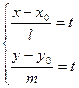 В каноническом уравнении (5) обозначим равные, но переменные для различных положений точки М, отношения через параметр t. Т.к. один из знаменателей (7) отличен от нуля, а соответствующий числитель может принимать любые значения, то областью изменения параметра t является вся вещественная ось, т.е. tÎR: