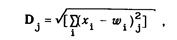 В работе [3] описывались интересные и полезные результаты исследований Кохонена на самоорганизующихся структурах, используемых для задач распознавания образов. Вообще эти структуры классифицируют образы, представленные векторными величинами, в которых каждый компонент вектора соответствует элементу образа. Алгоритмы Кохонена основываются на технике обучения без учителя. После обучения подача входного вектора из данного класса будет приводить к выработке возбуждающего уровня в каждом выходном нейроне; нейрон с максимальным возбуждением представляет классификацию. Так как обучение проводится без указания целевого вектора, то нет возможности определять заранее, какой нейрон будет соответствовать данному классу входных векторов. Тем не менее это планирование легко проводится путем тестирования сети после обучения. Алгоритм трактует набор из п входных весов нейрона как вектор в п-мерном пространстве. Перед обучением каждый компонент этого вектора весов инициализируется в случайную величину. Затем каждый вектор нормализуется в вектор с единичной длиной в пространстве весов. Это делается делением каждого случайного веса на квадратный корень из суммы квадратов компонент этого весового вектора. Все входные вектора обучающего набора также нормализуются и сеть обучается согласно следующему алгоритму: 1. Вектор Х подается на вход сети. 2. Определяются расстояния D j (в n-мерном пространстве) между Х и весовыми векторами wj каждого нейрона. В эвклидовом пространстве это расстояние вычисляется по следующей формуле
