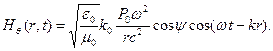 Важно заметить, что напряженность поля в момент времени t на расстоянии r от диполя будет определяться ускорением в более ранний момент времени Напряженность магнитного поля меняется синфазно с напряженностью электрического: