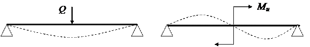 В этом случае элемент испытывает напряжение изгиба. Балка-стержень, работает на изгиб.