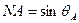 Апертуру измеряют в основном для многомодовых кабелей. Числовая апертура NA в случае, когда торец волокна граничит с воздухом, определяется: