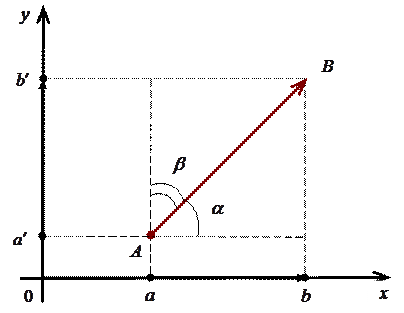 Нехай на площині дано вектор . Спроектуємо його початкову і кінцеву точку на вісі і .