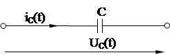 У колі за рахунок проходження струму розряду ємності будуть відбуватися незворотні теплові процеси на R до тих пір, поки енегрія, яка запасена, не стане дорівнювати 0. Новий сталий стан буде характеризуватися UС = 0, і = 0. 1. Для запису рівняння рівноваги кола введемо позитивний напрямок струму та напруги. R×i(t) + UC(t) = 0. Запишемо ДР