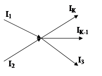 2. Закон Кіргофа: Алгебраїчна сума ЕРС, діюча в будь-якому контурі довільного розгалуженого електричного кола, дорівнює алгебраїчній сумі падінь напруги на усіх активних опорах цього контуру.