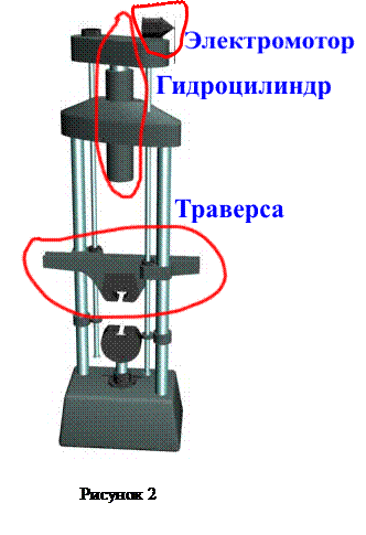 Устройство испытательной машины Моделируется проведение испытаний с помощью разрывной машины ГМС-50 (рис.2) с максимальным усилием 490 кН, вызывающей растяжение образца увеличением расстояния между захватами машины. Машина снабжена самописцем - устройством, которое автоматически вычерчивает диаграмму растяжения, представляющую зависимость между нагрузкой и удлинением образца