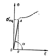 На диаграмме растяжения модуль продольной упругости представлен тангенсом угла наклона прямой ОА (см. рис. 9.1):
