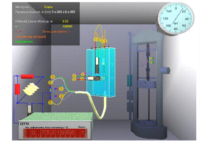 Устройство и работа испытательной машины Моделируется проведение испытаний стандартных металлических (сталь, чугун) и деревянных образцов (поперек и вдоль волокон) на гидравлическом прессе типа ПГ-100 (рис. 2.9).