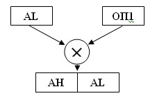 для беззнаковых MUL ОП1; АК * ОП1 → АК2