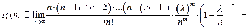 3*. Асимптотична формула Пуассона. Закон Пуассона розподілу ймовірностей рідкісних подій Якщо ймовірність події Зробимо при виведенні формули Пуассона одне допущення, а саме будемо вважати, що добуток Скористаємося при виведенні формули Пуассона формулою Бернуллі:
