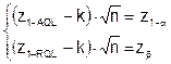 где, по-прежнему, k = (z1-qo + Тогда, для ОХ можно записать: L(m) = P( Или с учётом (5.1) в квантильной форме: L(q) = Таким образом, вне зависимости от вида ограничения (верхнего или нижнего) уравнение ОХ и, соответственно, соотношения для определения приёмочного коэффициента k и объёма выборки n получаются идентичными. Примечание. Если вернуться к (5.9) и сравнить k =(z1-qo + (z1-qo + Из последнего равенства, c учётом (5.12), следует: z1-g = Например, в системе AQL принимают: qo = AQL. Тогда по (5.14) получаем: z1-g = В системе ПРП: qo = RQL = NQL и тогда g = b.