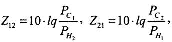 где: РС1 и РН2 – мощности сигналов в линии 1 и наводки в линии 2 соответственно; РС2 и РН1 – мощности сигналов в линии 2 и наводки в линии 1 соответственно.