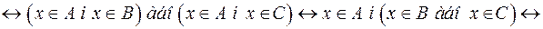 Доведення (самостійно) всіх рівносильностей проводиться 1) за означенням рівності множин і за означеннями операцій над множинами. Щоб довести деяку тотожність 2) за допомогою діаграм Ейлера-Венна. Доведемо, наприклад, дистрибутивність
