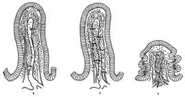 Ворсинки ритмично укорачиваются в такт сокращениям мышечной пластинки, и частота их сокращений уменьшается в направлении от проксимальных отделов кишечника к дистальным. Наибольшая двигательная активность ворсинок наблюдается в двенадцатиперстной кишке. [Мф4]