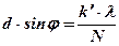Добавочные min и max возникают из-за того, что одновременно накладывается условие интерференции от многих щелей, а распределение интенсивностей в порядках спектра – дифракционной картиной от одной щели. При большом N и монохроматическом свете главные максимумы очень резкие. При освещении решётки белым светом в центре (φ = 0) возникает белая полоса (условие максимума для всех λ). Слева и справа от центральной белой полосы возникнут max для различных λ, т.е. возникает явление разложения падающего на диф. решетку света в спектр. Основными характеристиками дифракционных решёток являются: 1) Постоянная решетки (d) и общее число щелей N, т.е. её длина. 2) Угловая дисперсия