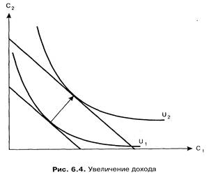 Влияние роста реальной процентной ставки выражается в эффекте дохода и эффекте замещения. Эффект дохода — изменение в потреблении, вызванное переходом к более высокой кривой безразличия. Эффект замещения — изменение в потреблении, вызванное изменением относительной цены потребления в оба периода. Если ставка процента повышается, то потребление2-го периода становится более дешевым по сравнению потреблением в 1-м периоде.