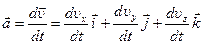 Аналогичным образом определим и вектор мгновенного ускорения, взяв производную от вектора скорости по времени