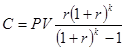 Пусть в начале года фирма произвела инвестицию (или получила ссуду) в размере PV по номинальной процентной ставке r. В конце первого года и в конце всех последующих k лет сделки фирма получала прибыль (или делала выплаты) не одинаковыми платежами Ci. Года 1, 2, …, i,…, k. Платежи в конце года C1, C2, …, Ci, …, Ck.