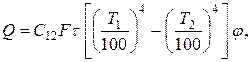 Взаємне випромінювання двох тіл, одне з яких знаходиться в порожнині іншого. Кількість тепла, що передається від більш нагрітого тіла до менш нагрітого за допомогою випромінювання: