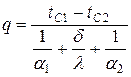 Тоді рівняння теплопередачі через плоску стінку набуде вигляду: