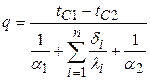 Коефіцієнт теплопередачі через багатошарову плоску стінку становить: