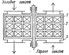 Рис.9.6. Схеми скруббера (а), обертального регенератора (б) і рекуперативного кожухотрубного теплообмінника.