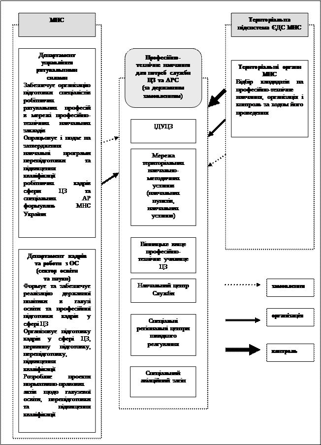 Професійно-технічне навчання для потреб служби ЦЗ та АРС (рис.) здійснюється професійно-технічними навчальними закладами МНС України (далі – навчальними закладами).