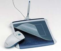 Рисунок 3.26 - Беспроводная интерактивная доска 75 дюймов Hitachi Электронные доски могут быть использованы для проведения видеоконференций (белые доски) как доски с выдачей бумажной копии, электронные грифельные доски, доски с возможностью ЖК-проекции. В случае использования грифельных досок интерактивных сенсорных экранов (сенсорный экран с прозрачной чувствительной к нажатию поверхностью, совмещенный с дисплейной панелью) для стирания написанного применяют специальное приспособление «ластик». С целью последующего использования написанной информации она может быть сохранена в файле. Типичным представителем электронных грифельных досок является доска SoftBoard фирмы Microfield Graphics. Другим примером служит интерактивный сенсорный экран SMART Board фирмы Smart Technologies. 6. Графические планшеты предназначены для работы с графическими приложениями (например, графическими редакторами и программами распознавания рукописного текста). На рынке имеются планшеты, чувствительные к силе нажатия стилуса (ручки) с беспроводным пером, а также дисплеи-планшеты. Иногда планшеты снабжаются темплетами (сменными планшетами-подкладками). На планшетах графические объекты изображаются мнемонически. Место размещения планшетного изображения, допустим, на поверхности экрана, указывается манипулятором, например, типа мышь (рисунок 3.27).