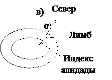 1) установка теодолита в рабочее положение: центрирование инструмента (рис. 8.17, а), приведение оси инструмента в отвесное положение (нивелирование инструмента, см. рис. 8.17, б), ориентирование инструмента (см. рис. 8.17, в), установка трубы для визирования;