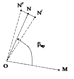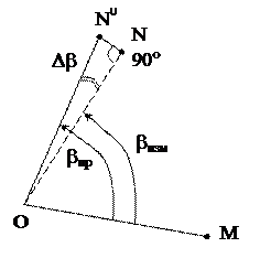 При построении угла с повышенной точностью (рис. 10.2) строят угол выше описанным способом. Угол b измеряют с установленной точностью. Вычисляют разность Db = bпр - bизм. Вычисляют расстояние NN0, на которое надо переместить по перпендикуляру точку N в ее проектное положение N0 по формуле