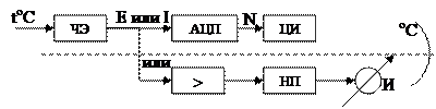 АЦП – Аналогово-цифровой преобразователь ЦИ – цифровой индикатор > – усилитель НП – нормирующий преобразователь И – стрелочный индикатор