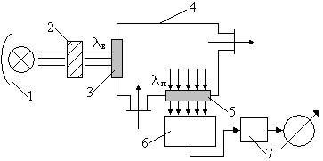 Принципиальная схема 1 – источник возбуждающего излучения 2 – фильтр узкополосный 3 – оптическое стекло 4 – кювета