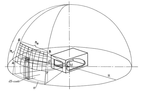 Условие, когда эти поверхности создадут равные освещенности, т.е. Е1 = Е2 = … = Ек, будет соблюдено, если L1·w1 = L2·w2 = … = Lк·wк. Если принять полусферу равномерной яркости, то w1 = w2 = … = wк.