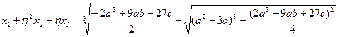 Обозначим корни кубического уравнения через . Положим и , . Легко проверить, что и , - симметрические многочлены от . По основной теореме алгебры симметрических многочленов их можно выразить через элементарные симметрические многочлены, значения которых, по формулам Виета, совпадают с точностью до знака с коэффициентами исходного многочлена. Проведя несложные вычисления, получим и . По формулам Виета - корни квадратного уравнения и могут быть вычислены по формулам . Таким образом справедливы уравнения , , . Из этой системы находим корни исходного уравнения.