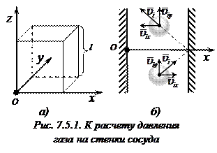 Пусть газ находится в сосуде кубической формы с ребром время взаимодействия молекулы со стенкой. Таким образом, сила, с которой молекула будет действовать на стенку сосуда при ударе, равна Время взаимодействия молекулы со стенкой неизвестно. Поэтому заменим кратковременно действующую ударную силу