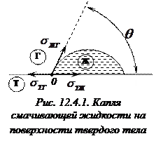 Эти силы, отнесенные к единице длины линии соприкосновения, равны соответствующим поверхностным натяжениям. Угол