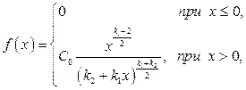 Если U и V – независимые случайные величины, распределенные по закону c2 со степенями свободы k1 и k2, то величина