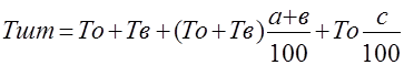 где а – норма времени на организационное обслуживание рабочего места ОБ(ОРГ) в % от Топ, в - норма времени на отдых и личные надобности (ОТЛ) в % от Топ, с - величина времени на техническое обслуживание рабочего места ОБ(ТЕХ) в % от То.
