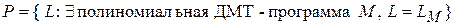 ДМТ-программа M называется полиномиальной, если существует полином некоторой степени k, такой что Класс языков P образуют языки, для которых существует полиномиальная ДМТ-программа распознавания, т.е.