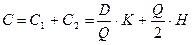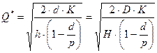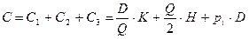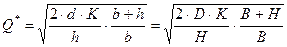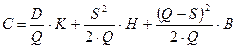 Пусть: Q — размер заказа; T — протяженность периода планирования; D — величина спроса за период планирования; d — величина спроса в единицу времени; K — издержки заказа; H — удельные издержки хранения за период; h — удельные издержки хранения в единицу времени. Предположим, что известны числа