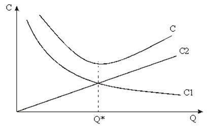 Кривые издержек заказа, издержек хранения и совокупных издержек указаны на следующем рис. 2: