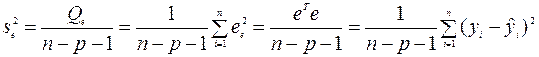 Несмещённая оценка дисперсии ошибок (несмещённая выборочная остаточная дисперсия определяется выражением)