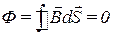 Поток через замкнутую поверхность , так как магнитных зарядов одного знака в природе нет (равенство Гаусса-Остроградского).