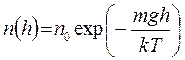 где h — высота от поверхности тяготеющего тела (Земли); n0 — концентрация частиц у поверхности; т — масса частиц.