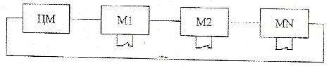 Рис. 4 Возможно наличие блока приоритетов. Недостаток соединения – сравнительно длительная установка связи. Преимущество – требуется небольшое количество линий при доступной высокой скорости передачи. Данный вид ИФ получил самое широкое применение; 1.4 Комбинированный способ. Возможно применение цепочечно-радиального, цепочечно-магистрального и других способов соединения;