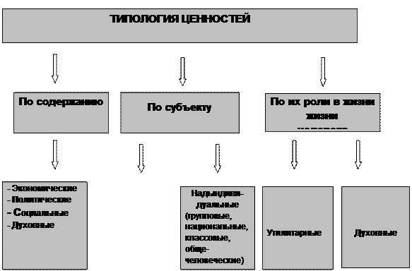 Ценности как феномен культуры. Типология и иерархия ценностей. Ценностные ориентации в современном миреЧеловек живет в мире ценностей. Именно они определяют направление развития общества, выступая ориентирами в жизни каждого человека и формирующего его общества. Представления о ценностях человека формируются в обыденной, повседневной жизни, в этических, эстетических, религиозных, философских и научных поисках необходимых жизненных условий, идеалов счастья, цели и смысла человеческого существования. Ценностные ориентации, определяемые жизненными обстоятельствами, мировоззренческими ориентирами различных социальных групп и отдельных людей, выражаются в идеалах религиозных учений, этических установок гедонизма, эвдемонизма, стоицизма, утилитаризма, индивидуализма, коллективизма, альтруизма, аскетизма. Представления о ценностях получают развитие уже в период Античности. В учениях Сократа (469 – 399 до н. э.), Платона (427 – 347 до н.э.), Аристотеля (384 – 322 до н.э.) ценностная проблематика получает выражение в идеях блага, добра, истины, красоты как вечных и неизменных сущностей, абсолютов, являющихся неотъемлемой частью самого универсума бытия. Однако античные представления о ценностях лишены «персонализма». В эпоху Средневековья разрабатывается концепция Бога как высшего блага и абсолютной ценности. Предметом схоластической мысли выступили исследования «онтологии блага», иерархической субординации благ, различение благ условных и блага безусловного. Внутренний мир личности и конституирующие его ценности остались за рамками схоластики, что определяло объективную природу ценностей. Ценности представлялись как существующие сами по себе потусторонние объекты, не зависящие от человека, но выступающие критерием его поведения.