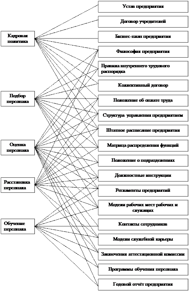 Взаимосвязь подсистем работы с персоналом с нормативными документами
