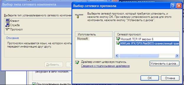 3. Используя кнопку «Установить» вызвать окно настройки сетевых протоколов.